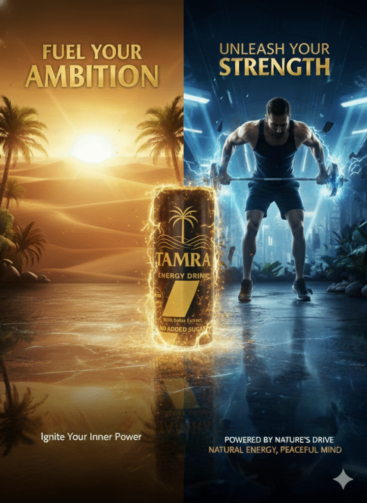 Experience the power of natural date extracts in every sip. No sugar added, just clean, sustained energy to fuel your body and mind. Refreshing, invigorating, and crafted to keep you moving — Tamra Energy Drink is your natural boost, straight from the heart of the desert.